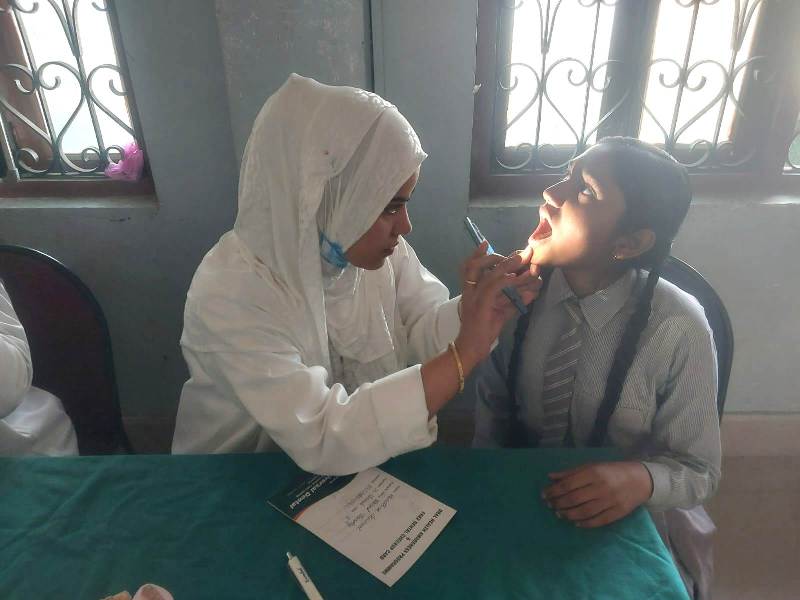 During the camp, dental examinations were conducted for 480 students, including 230 girls. Out of them, 55 children were identified with dental problems, while 40 children, particularly among the younger age group, were found to have cavities mainly due to the frequent consumption of chocolates and other sweet items.
