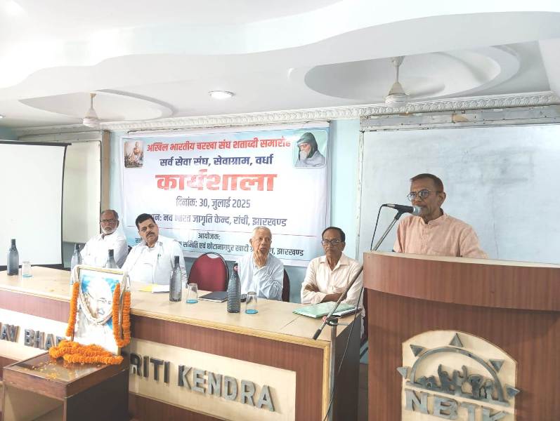 30 July 2025, Ranchi: To commemorate 100 years of the All India Charkha Sangh, a special workshop was organized on 30th July 2025 at the Ranchi office of Nav Bharat Jagriti Kendra (NBJK) under the aegis of Sarva Seva Sangh, Sevagram (Wardha). The event was supported by Jharkhand Sarvodaya Mandal, Pradesh Lok Samiti, and Chhotanagpur Khadi Gramodyog Sangh, Ranchi.