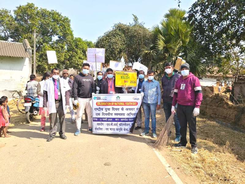 12 January 2026, Jamtara: Nav Bharat Jagriti Kendra (NBJK), with the support of SBI Foundation under the SBI Gram Seva Programme, observed National Youth Day by organizing a Swachhta Abhiyan (Cleanliness Drive) in Bamandiha Panchayat of Fatehpur block, Jamtara district.